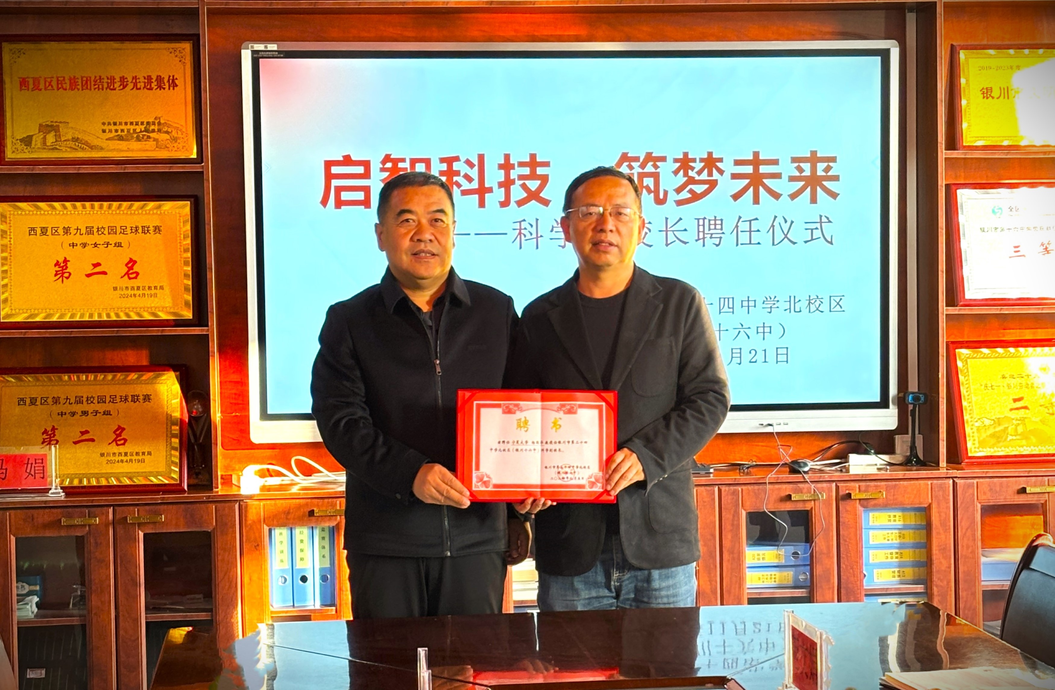报告会前,北校区校长何明为杨国华颁发科学副校长聘书。