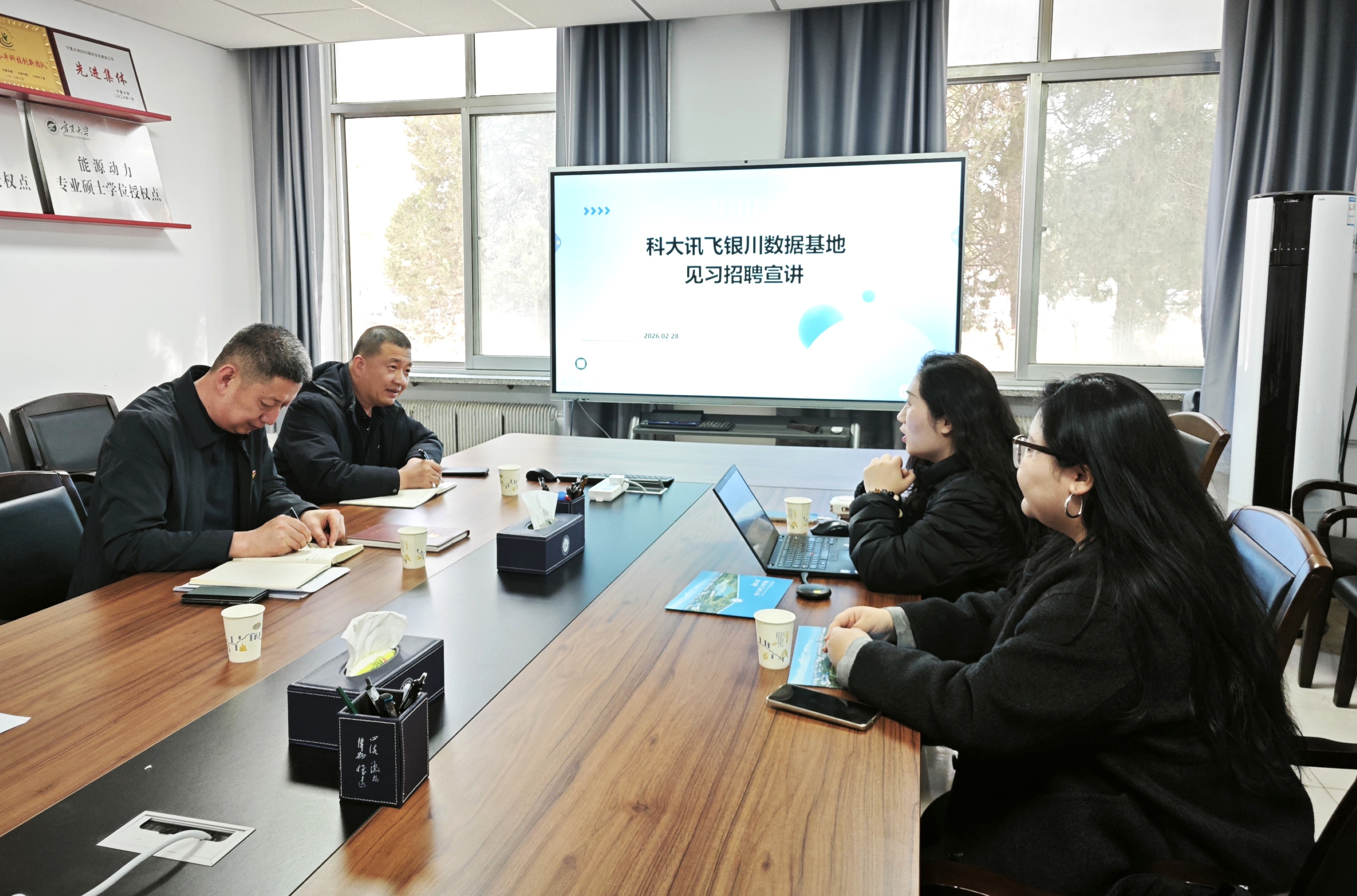 会上,何彦平对科大讯飞代表的到访表示热烈欢迎,详细介绍了学院在学科建设、人才培养及科研创新方面的基本情况与发展现状。王思雨全面介绍了科大讯飞数据基地的整体概况,重点解读了针对银川实习基地的实习生招募政策与培养计划。李春树结合校企合作经验,分享了合作成果,并就未来与科大讯飞在联合培养、实习实践、科研攻关等多个维度的合作模式提出了建设性意见与可行路径。